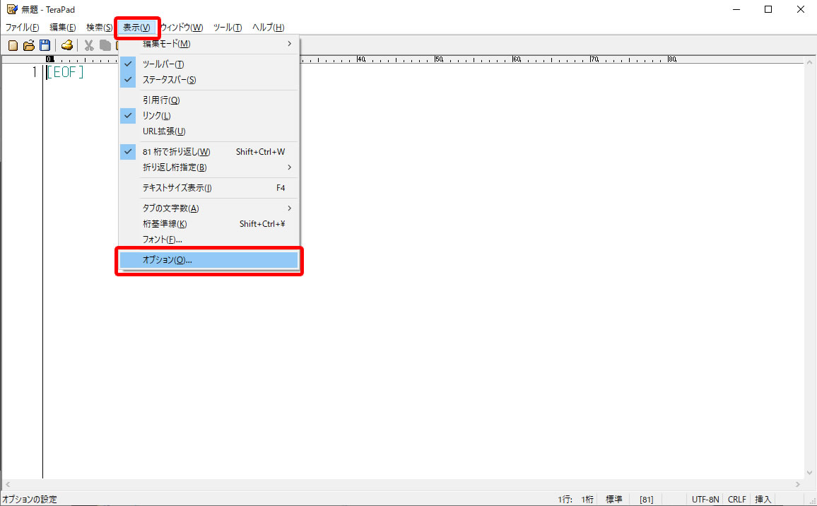 「表示」メニューから「オプション」を選びます。